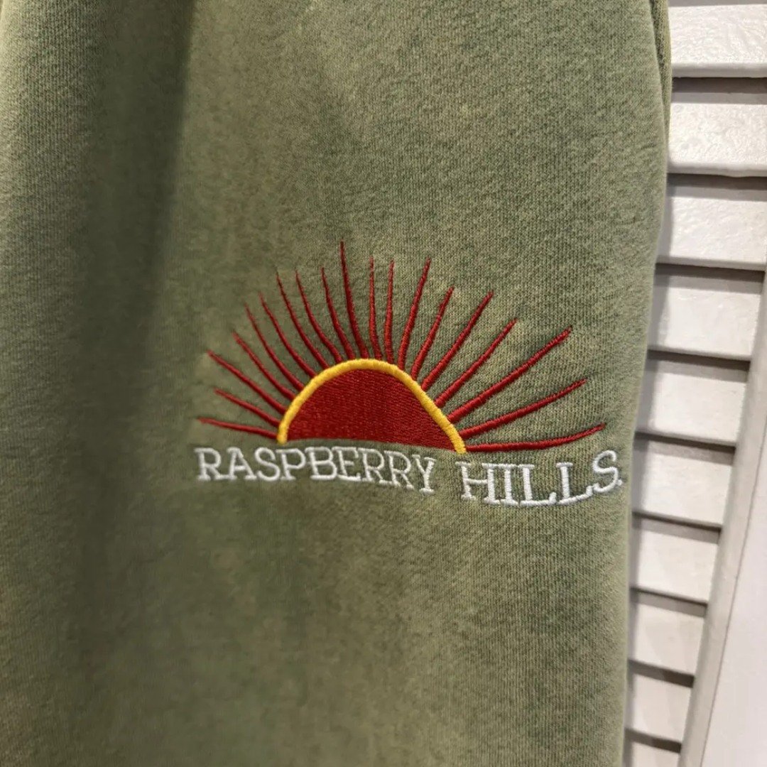 The GV Gallery Raspberry Hills Casamigo Sweatpants Green showcase a minimalist yet elevated design. The soft green tone paired with the Raspberry Hills embroidered logo creates a refined and stylish look.